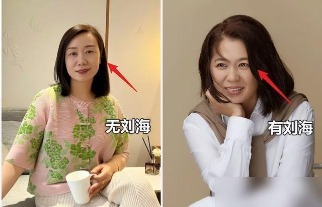 我之前留齐刘海,把眉毛盖住,结果眼睛看起来像没睡醒,像“蔫了的花”;后来把刘海往上梳一点,露出眉毛,瞬间精神了——中年女人的“精气神”,全在眼睛和眉毛上!